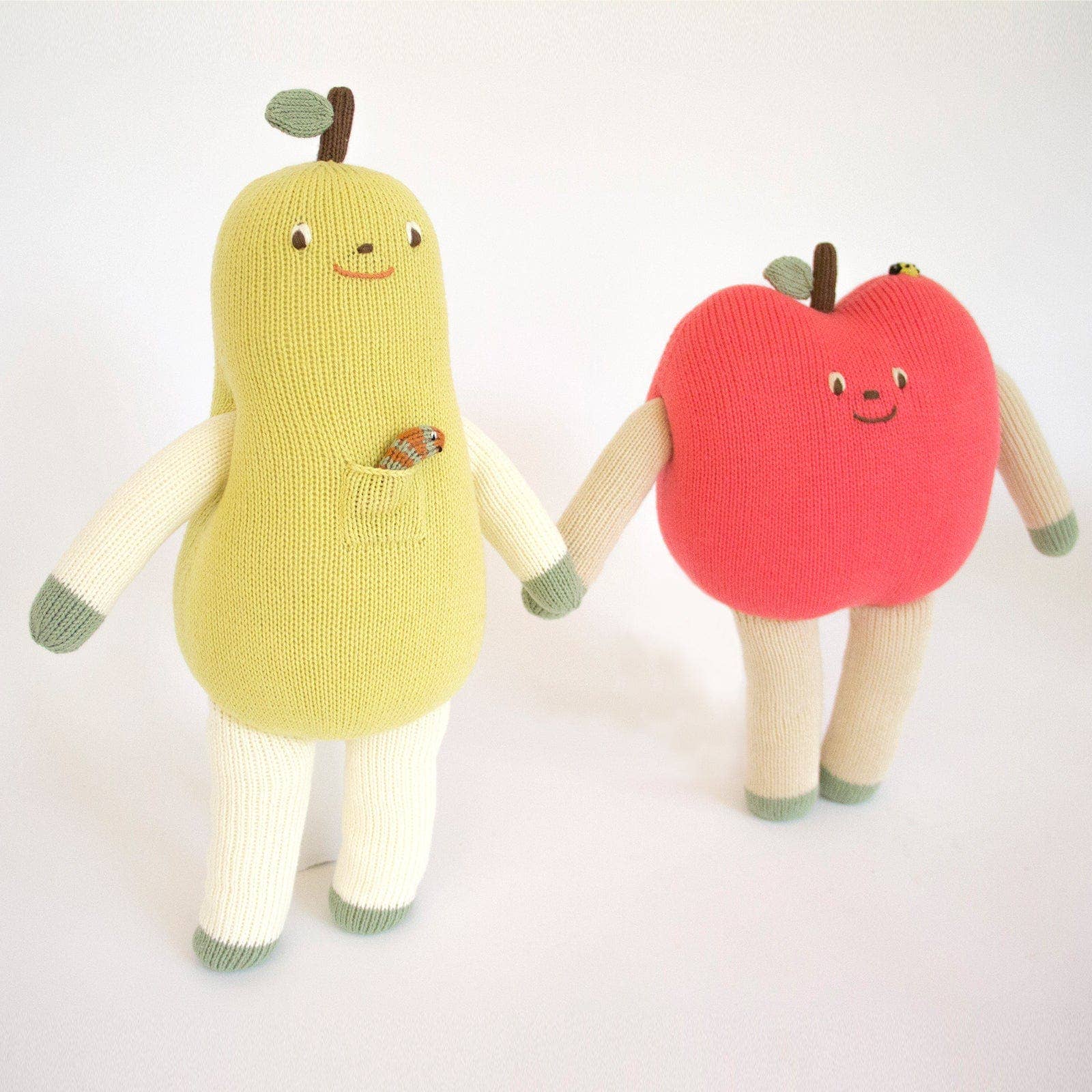 Bartlett is our pear-sonal favorite. She is plump and cuddly, bright and golden. She goes everywhere with her cute wiggly worm in her pocket, but she never runs out of juice.