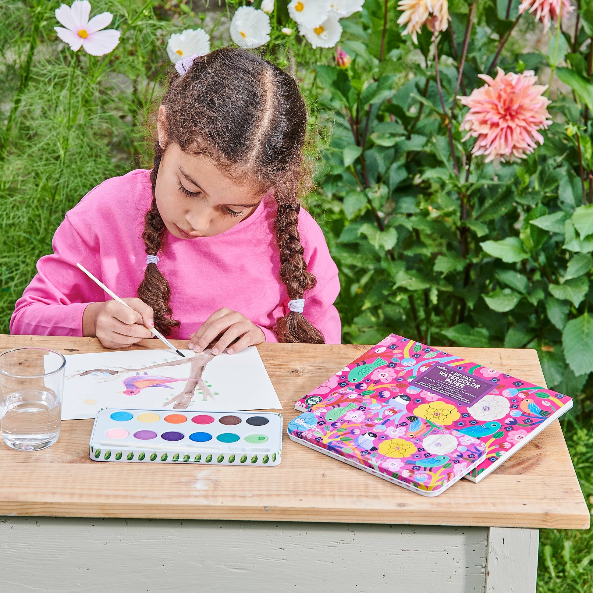 High-quality watercolors and a brush in a beautiful tin box featuring bright and delightful bird artwork by Monika Forsberg. A perfect companion to our watercolor pads. Develop skills and build confidence while exploring color, media, and self-expression.