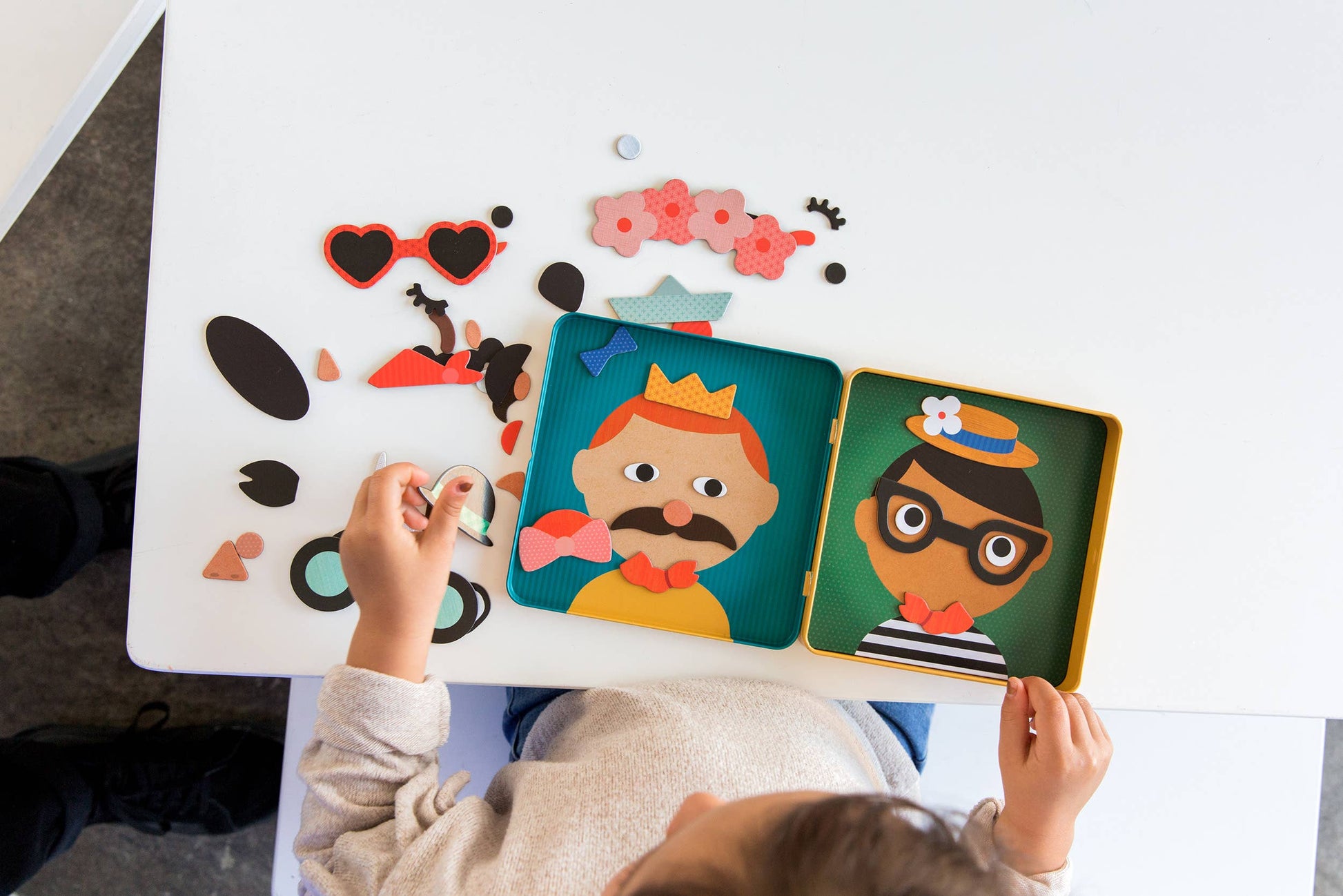 How silly can you make each face look? Create over 100 different combinations! Punch out over 25+ magnetic pieces that can be mixed and matched to create multiple funny faces.