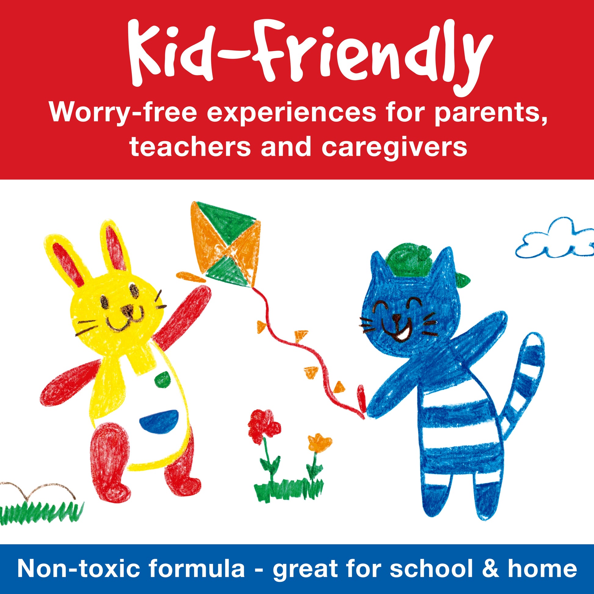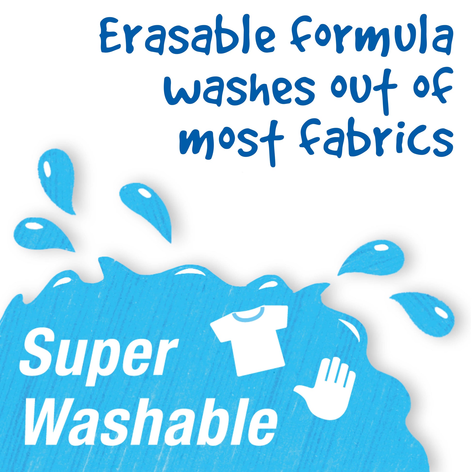Rich crayon formula is non-toxic and safe for little ones. Washes out of most fabrics for peace of mind and easy clean-up.