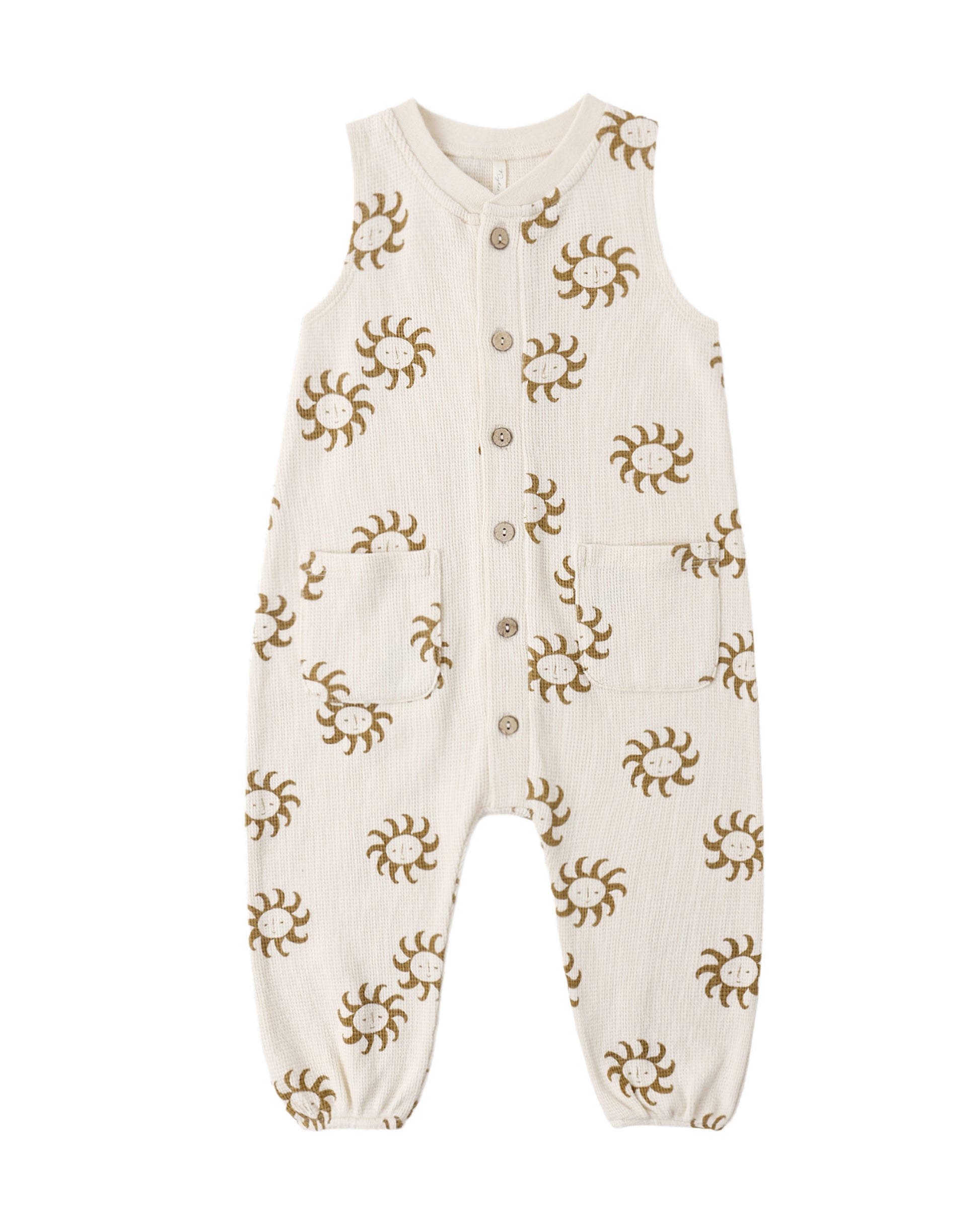 Baby & toddler waffle jumpsuit in sunny pattern.